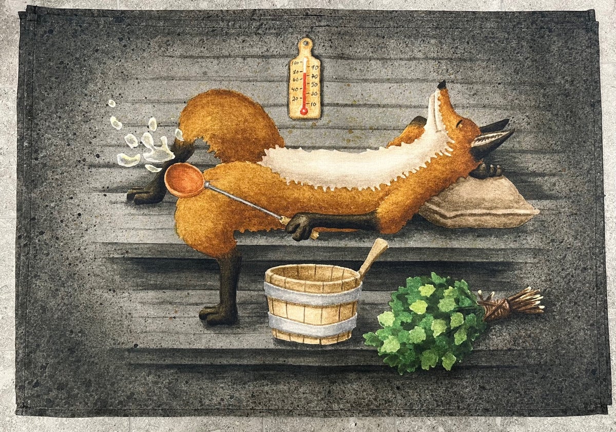 Taitelija Katja Saarion suunnittelema laudeliina (suunniteltu yhdelle ihmiselle) /keittiöpyyhe, 43,5 x 65 cm.